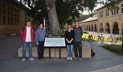 藍灣科技與中國工程院院士、北京化工大學校長譚天偉(左)團隊合作                  藍灣科技與上海交通大學教授、美國斯坦福大學博士傅磊(右二)團隊合作